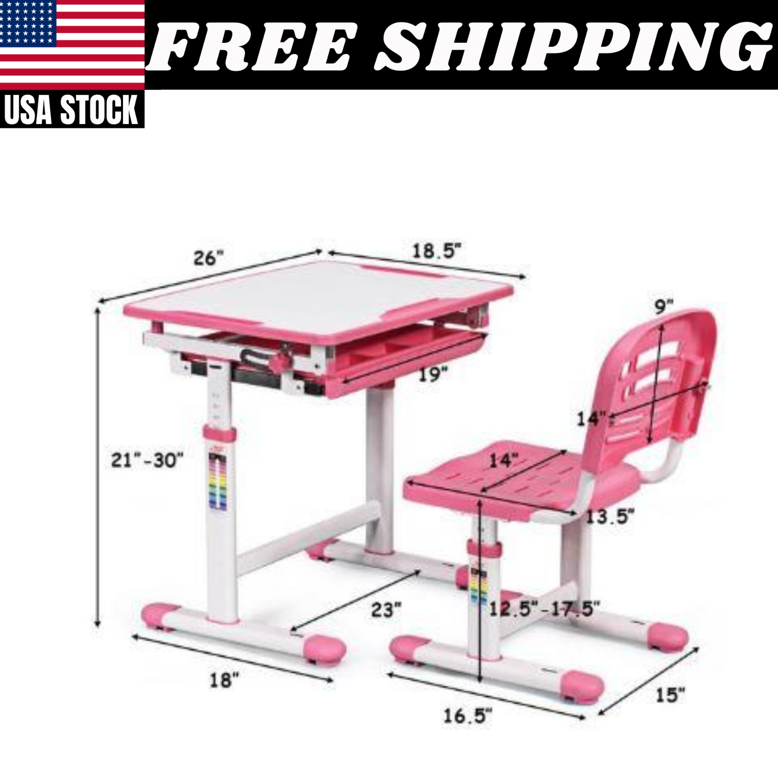 Gymax Height Adjustable Children S Desk Chair Set Multifunctional Study Drawing Ebay