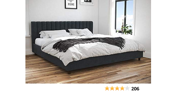 Amazon Com Novogratz Brittany Upholstered Bed Blue Linen Queen Kitchen Dining Upholstered Beds Upholstered Platform Bed Platform Bed