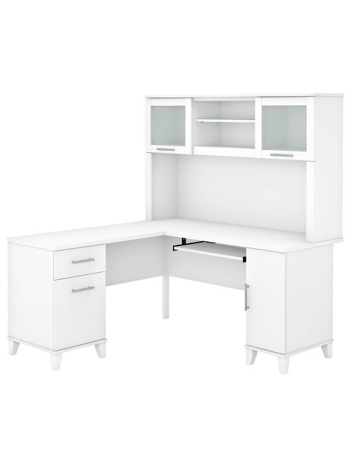 Bush Furniture Somerset 60 W L Shaped Desk With Hutch White Standard Delivery Office Depot