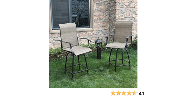 Amazon Com Phi Villa 2 Piece Outdoor Swivel Bar Stools Height Bar Bistro Chair With All Weather Steel Frame Garden Outdoor
