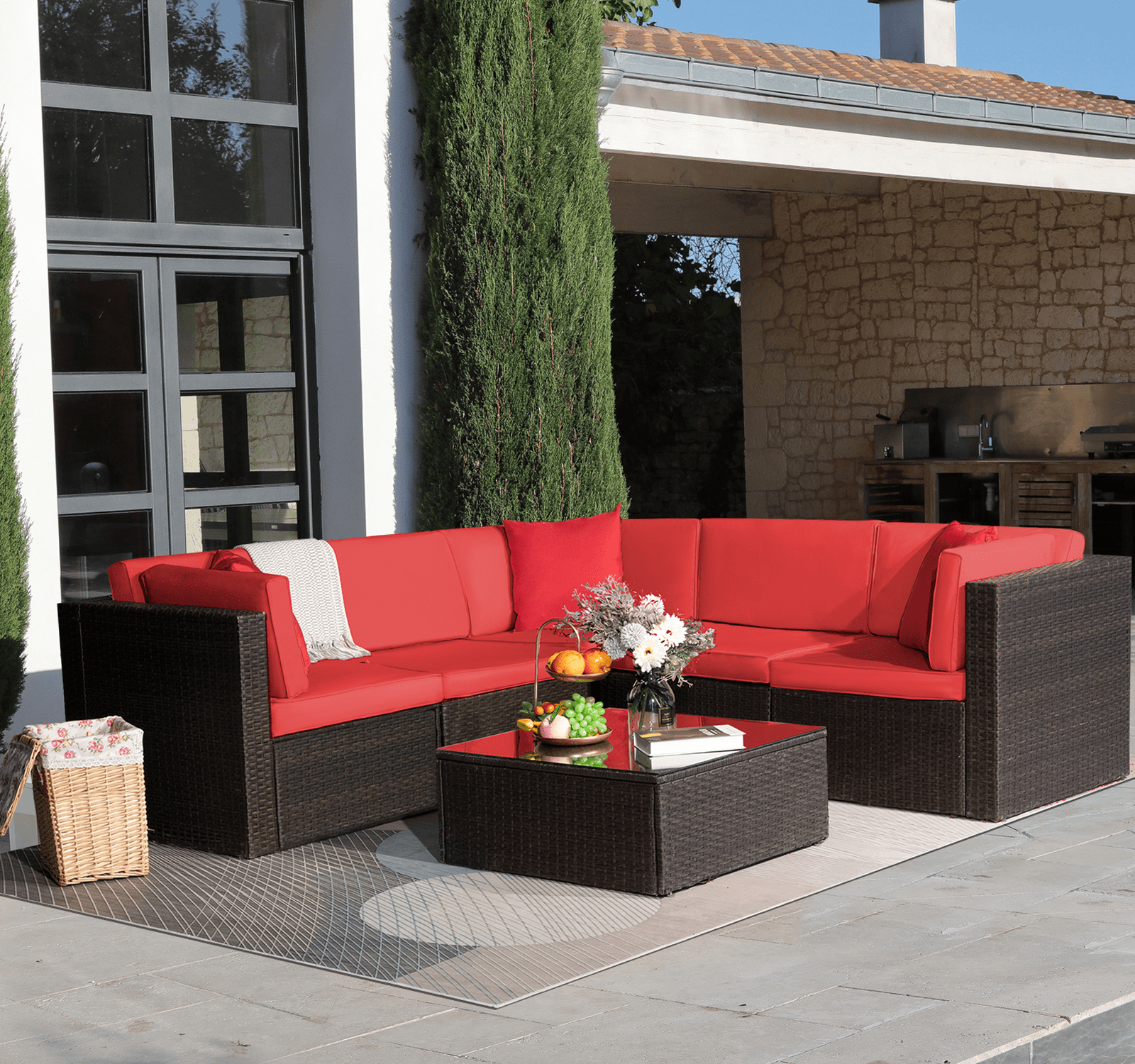Walnew 6 Pieces Outdoor Furniture Patio Sectional Sofa Sets All Weather Pe Rattan Manual Wicker Conversation Set With Washable Cushions And Glass Table Red Walmart Com Walmart Com