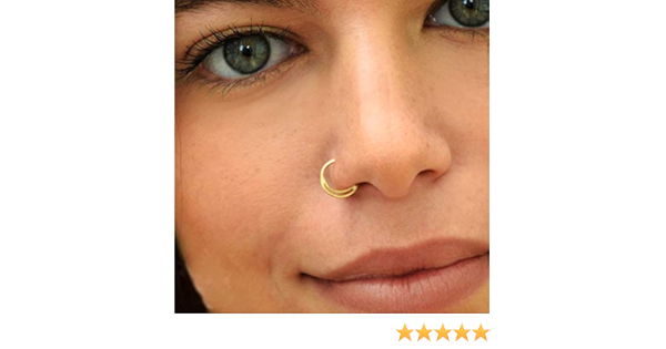 Amazon Com Gold Nose Rings Hoop Double Half Moon 14k 20 Gauge 8mm 5 16 Inch Crescent Cartilage Body Piercing Handmade