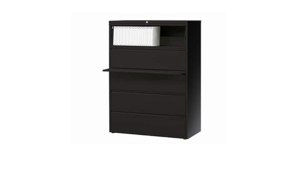 5-Drawer Black Steel Lateral File Cabinet 36 Inch W. W lateral file cabinet features two drawers for storing a variety of documents. Precision ball bearing glides for smooth opening and closing.