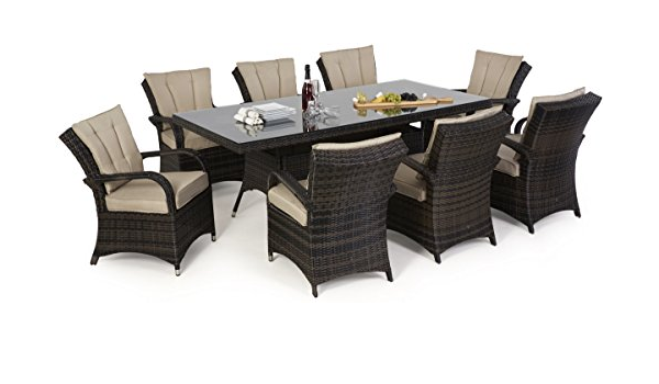 Maze Rattan Texas 8 Seat Rectangular Dining Set With A 200cm By 100cm Table In A Mixed Brown Weave Amazon Co Uk Garden Outdoors